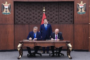 رعى رئيس مجلس الوزراء محمد شياع السوداني، مراسم توقيع الآلية التنفيذية لاتفاقية التعاون في مجال المياه بين العراق ...