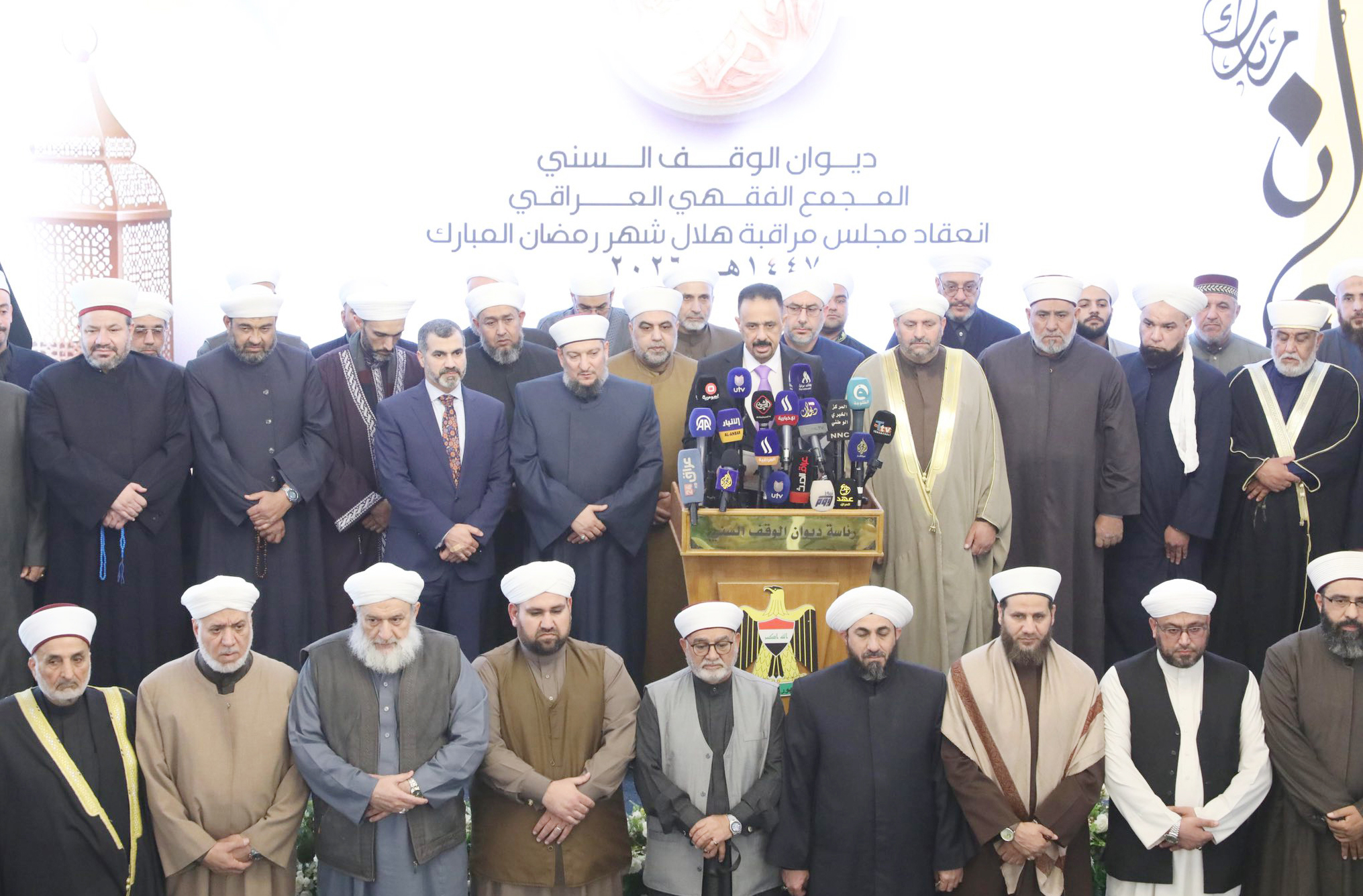 وذكر ديوان الوقف السني، في بيان : أنه "بعد ثبوت رؤية هلال شهر رمضان المبارك بالوجه الشرعي، وبناءً على وحدة المطالع، فإن يوم غدٍ الأربعاء هو غرة شهر رمضان للعام الهجري 1447".