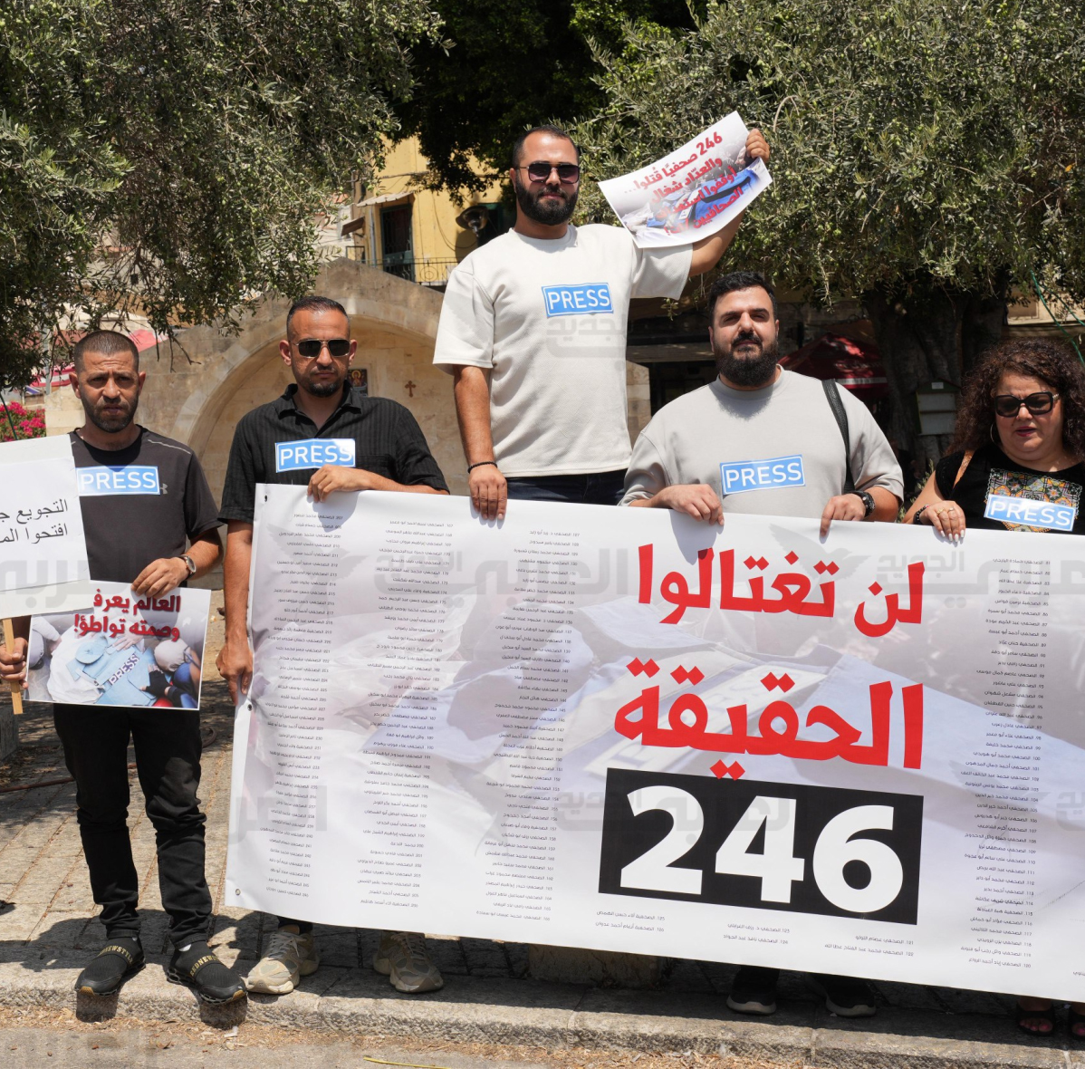 وفي السياق ذاته نظم عدد من الصحفيين في الداخل الفلسطيني المحتل في وقفة احتجاجية في ساحة العين بمدينة الناصرة، رفضاً لاغتيال الصحفيين في قطاع غزة واستنكاراً للإبادة الجماعية المستمرة منذ أكثر من 22 شهراً.