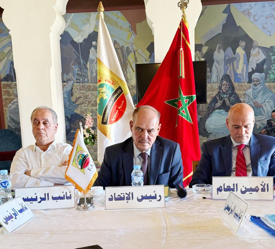 جددت الامانة العامة لاتحاد الصحفيين العرب في اجتماعها الدوري برئاسة رئيس الاتحاد مؤيد اللامي بمدينة العيون المغربية تأكيدها على مواقفها الثابتة تجاه قضايا الأمة العربية العادلة وفي مقدمتها القضية الفلسطينية التي تتعرض في الظروف الراهنة إلى أخطر التهديدات الهادفة إلى إقبار هذه القضية العادلة و المطالب المشروعة المرتبطة بها.